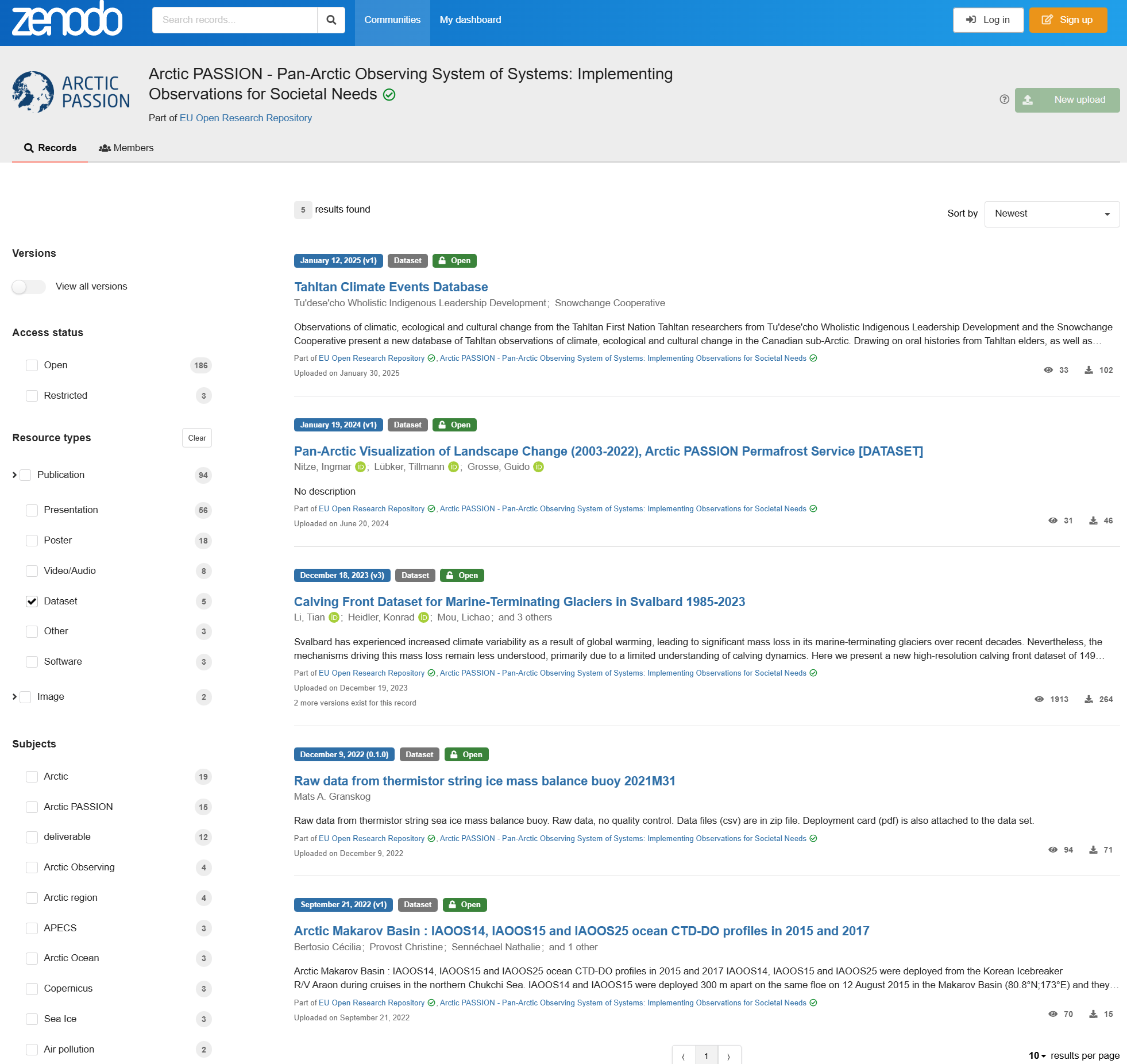 The repository for European Commission-funded research contains four Arctic PASSION datasets as of December 2nd 2025.